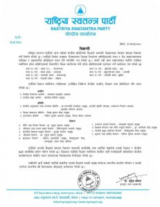काठमाडौं । राष्ट्रिय स्वतन्त्र पार्टीले चार महिनाभित्र देशैभर संगठन विस्तार गर्ने निर्णय गरेको छ । आइतबार पार्टीको केन्द्रीय कार्यालय बसुन्धारामा बसेको केन्द्रीय समितिले उक्त निर्णय गरेको हो ।