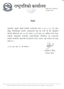 काठमाडौं । गृहमन्त्रीको जिम्मेवारी पुष्पकमल दाहाल प्रचण्डले पाउनुभएको छ । राष्ट्रपति कार्यालयले आज एक विज्ञप्ति निकालेर प्रधानमन्त्री प्रचण्डकै सिफारिसमा उहाँलाई नै गृहमन्त्रीको जिम्मेवारी तोकिएको जनाएको छ ।