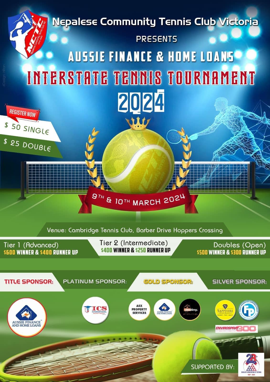 आईसीएस इन्टरनेशनल, डेस्टिनी लिभिँग, एइएक्स प्रपर्टी, फुल्ली प्रोमेटेड क्याम्बलफिल्ड, सफायर इस्टेट एजेन्ट्स, र इन्भायरोस्प्रेले सहप्रायोजन गरेको उक्त प्रतियोगितालाई नेपाली संघ भिक्टोरिया न्याभले संस्थागत प्रोत्साहन सहयोग गरेको छ ।  एनसिटीसीका सचिव भिष्म गौतमले एनसिटीसी भिक्टोरियाको नेपाली समुदायमा टेनिसलाई प्रोत्साहन गर्ने लक्ष्य राखेको भन्दै पछिल्लो समय टेनिसमा नेपालीहरुको लगाव बढ्दै गएको बताए ।