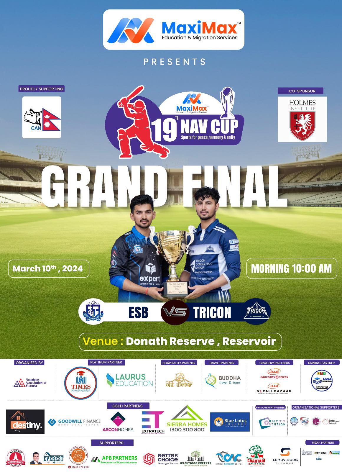 म्याक्सीम्याक्स एजुकेशन एन्ड माइग्रेसनको मुख्य प्रायोजन तथा होम्स इन्सिटट्युटको सहप्रयोजनमा आयोजित उक्त प्रतियोगिताको फाइनल खेल आगामी आइतवार हुँदैछ ।