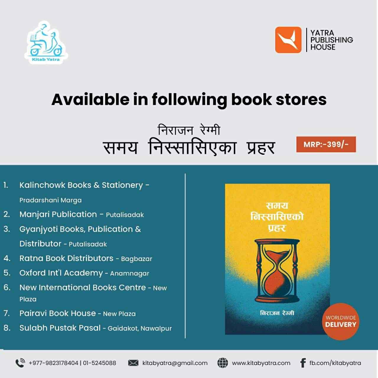 ‘समय निस्सासिएको प्रहर’ काठमाण्डू र चितवनका विभिन्न पुस्तक पसलहरूमा उपलब्ध छ।