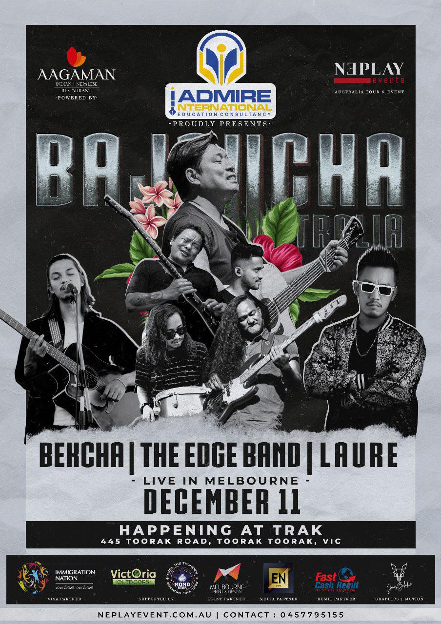 पछिल्लो समय युवा पुस्ताहरुमाझ लोकप्रिय रहेका र्यापपर लाहुरे अर्थात आशिष राना मगर, द एज ब्याण्ड, बेक्चा’सहितको विशेष उपस्थितीमा यही आइतवार मेलवर्नको टूरकमा इभेन्ट गर्न लागिएको नेप्लेका निर्देशक सन्जय शाहले जानकारी दिए ।