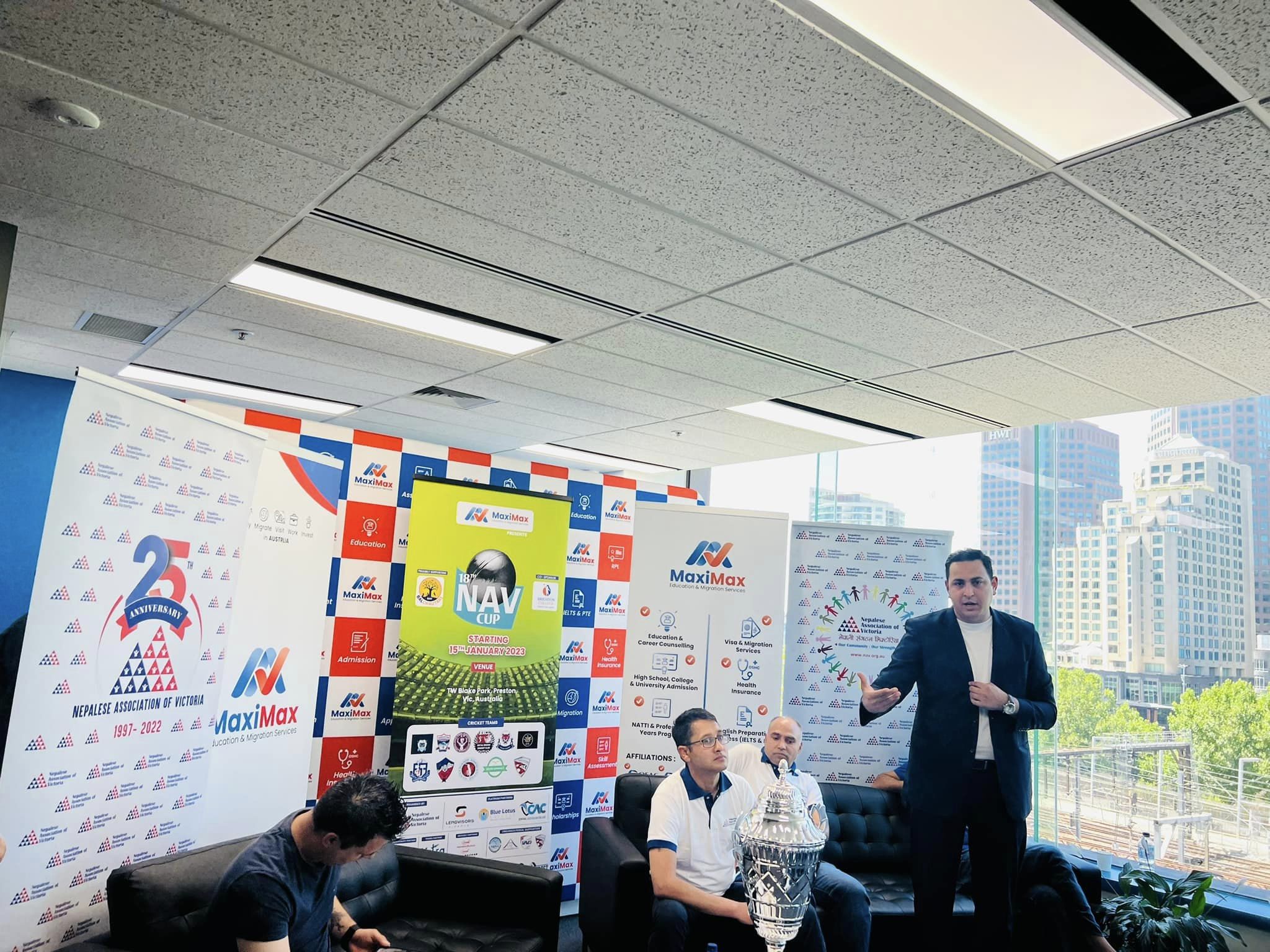 म्याक्सिम्याक्स एजुकेशन एण्ड माइग्रेसन सर्भिसेजको मुख्य प्रायोजन तथा ब्राइटन कलेजको सहप्रायोजनमा यस क्षेत्रमा नेपाली समुदायबाट आयोजना हुने हालसम्मकै ठूलो खेलकूद प्रतियोगिता न्याभ कपको तयारीको बारेमा जानकारी दिन आइत्वार विहान १० बजे म्याक्सीम्याक्सको कार्यालयमा पत्रकार सम्मेलन आयोजना गरिएको थियो ।